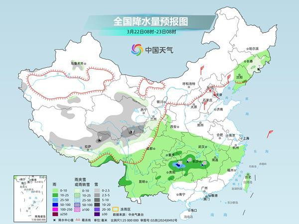 明天,南方地区将进入这轮降雨的最强时段。预计,新疆西部和南部山区、西藏南部和东部、青海东部和南部、甘肃西南部、川西高原北部等地部分地区有小到中雪或雨夹雪,其中,青海东南部、川西高原北部等地部分地区有大雪。西藏东南部、湖北中东部、安徽南部、湖南大部、江西中北部、浙江西部、福建西北部、广西北部、贵州东部等地部分地区有中到大雨,其中,江西东部、福建西北部等地部分地区有暴雨。
